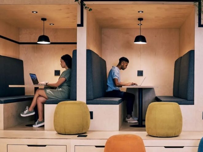 Coworking spaces are greater than your standard office. They feature glass-walled private offices and write-on-the-wall conference rooms, enabling remote workers, freelancers, or professionals to access shared and private spaces to work together.